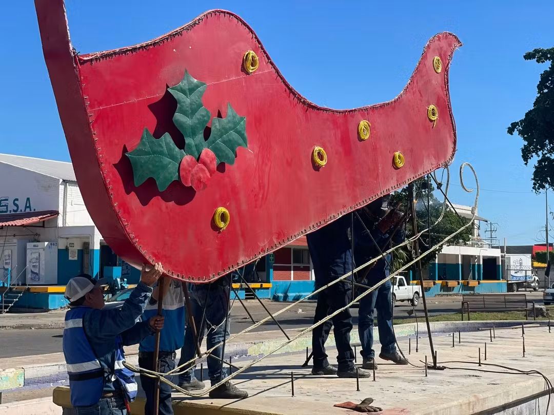 Los Mochis se prepara para la Navidad: avanzan trabajos de decoración y renuevan el tradicional pino.