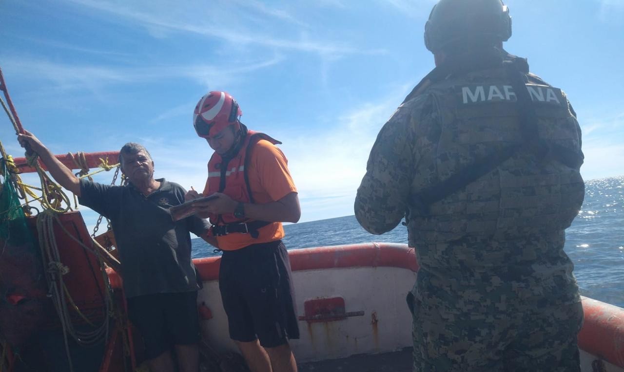 Derivado de lo anterior, zarpó una embarcación tipo Defender perteneciente a la ENSAR Topolobampo, con personal especializado y de sanidad naval a bordo, con el fin de dirigirse al punto y brindar apoyo a citado buque.